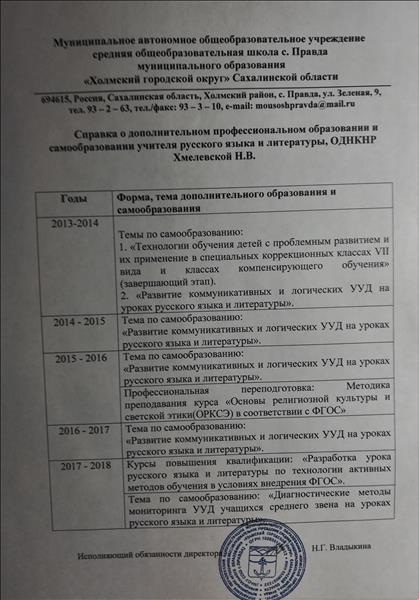 (ГБОУ ДПО "Институт развития образования Сахалинской области". 10часов. Форма обучения: заочно.).